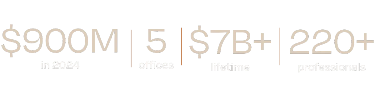 A. 220+ professionals across five offices, $7B+ lifetime sales, $1B in 2024 alone, thousands of 5-star reviews, and recognition on RealTrends’ Best Mega Teams list.